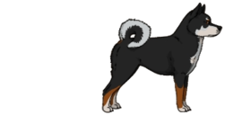 Kleines, dreieckiges Stehohr; Rute in sichelförmiger Haltung getragen.